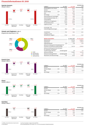 Nach einem dynamischen Jahresauftakt beschleunigte die Symrise AG ihren organischen Wachstumskurs im zweiten Quartal. Alle Segmente und Regionen trugen zu dieser positiven Entwicklung bei. Der Konzernumsatz stieg im ersten Halbjahr 2018 deutlich um 9,0 %. Unter Berücksichtigung von Portfolio- und Währungseffekten wuchs der Umsatz um 4,0 % auf 1.575,5 Mio. € (H1 2017: 1.515,3 Mio. €). Das Ergebnis vor Zinsen, Steuern und Abschreibungen (EBITDA) belief sich auf 317,1 Mio. € (H1 2017: 322,9 Mio. €). Die EBITDA-Marge lag mit 20,1 % weiterhin auf einem guten Niveau. Vor dem Hintergrund der positiven Geschäftsentwicklung konkretisiert Symrise den Ausblick für 2018: Der Konzern geht nunmehr davon aus, ein Umsatzwachstum oberhalb des mittelfristigen Zielkorridors von 5 bis 7 % zu erreichen und damit deutlich schneller als der Markt zu wachsen.