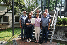 hinten von links: Johannes Menne (Tesium, Ausbilder für die Elektroniker), Rüdiger Mendyk (Tesium, Ausbilder für die Industriemechaniker), Jens Bruchhäuser (Symotion, Ausbilder für die Fachkräfte für Lagerlogstik), Frank Dahmen (Symrise, Ausbilder für Chemielaboranten, Chemikanten, Destillateuere), vorne von links: Mandy Tschierschwitz (Symotion, Ausbilderin für die Kaufleute für Spedition und Logistikdienstleistung), Petra Brychcy, Martin Gellert (Symrise, Ausbilder für Chemielaboranten, Chemikanten, Destillateure)